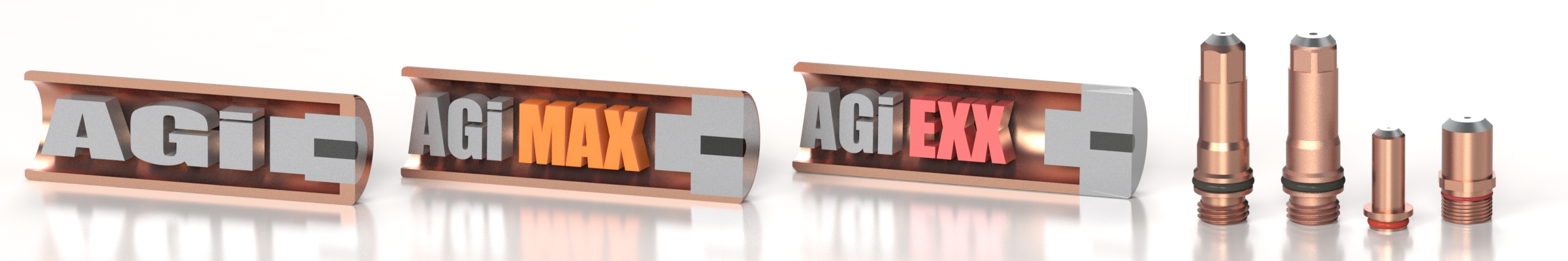 ADJUST ARC VOLTAGE In order to maintain the proper torch-to-plate distance in systems using a voltage-based height control, arc voltage should be increased in 5-volt increments throughout the life of the AGi electrodes. The first adjustment is usually needed at the time that you would replace a copper electrode. To maximize consumable life, continue to adjust arc voltage to maintain the initial torch-to-plate distance. |